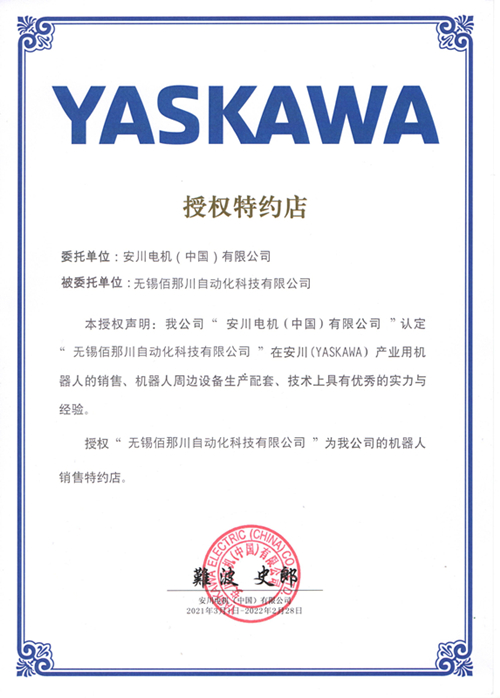 公司長(zhǎng)期與日本安川YASKAWA等公司合作,是其機(jī)器人中國(guó)區(qū)官方授權(quán)系統(tǒng)銷(xiāo)售商和服務(wù)商.